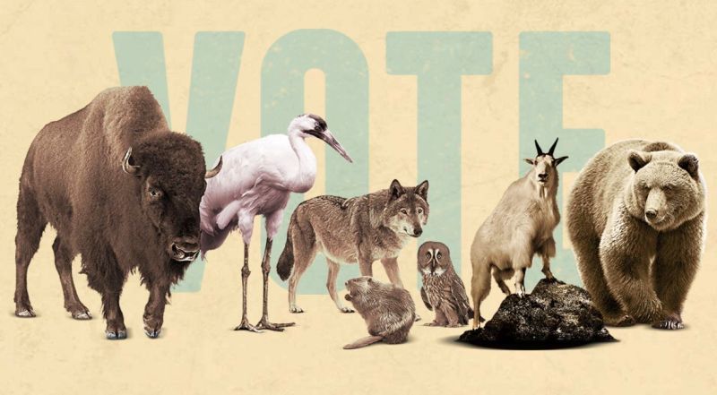 Seven Canadian animals were nominated, including the grizzly bear, bison, grey wolf, whooping crane, Rocky Mountain goat, great grey owl and the beaver.