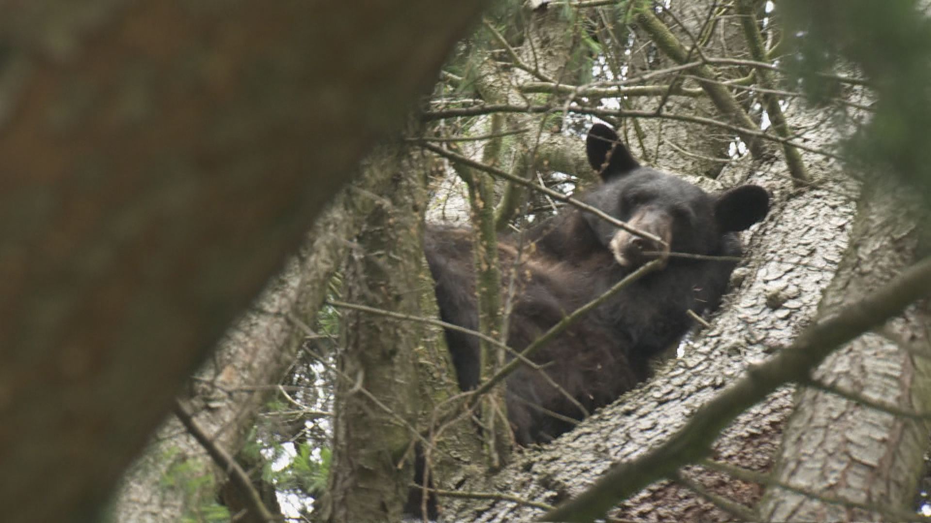 A young black bear was spotted hanging out in a tree along East Pender Street, near Renfrew Street and the PNE.