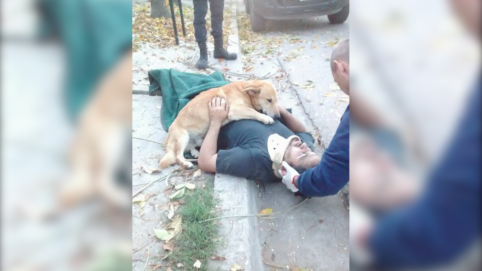 Tony, a dog in Argentina, was pictured laying on top of his owner, Jesus Heuche, on May 13, after Heuche fell more than two metres from a tree.