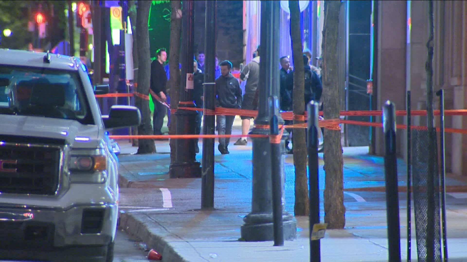 They found a 23-year-old man with a stab wound to his upper body nearby at the corner of Crescent and Sainte-Catherine streets.
