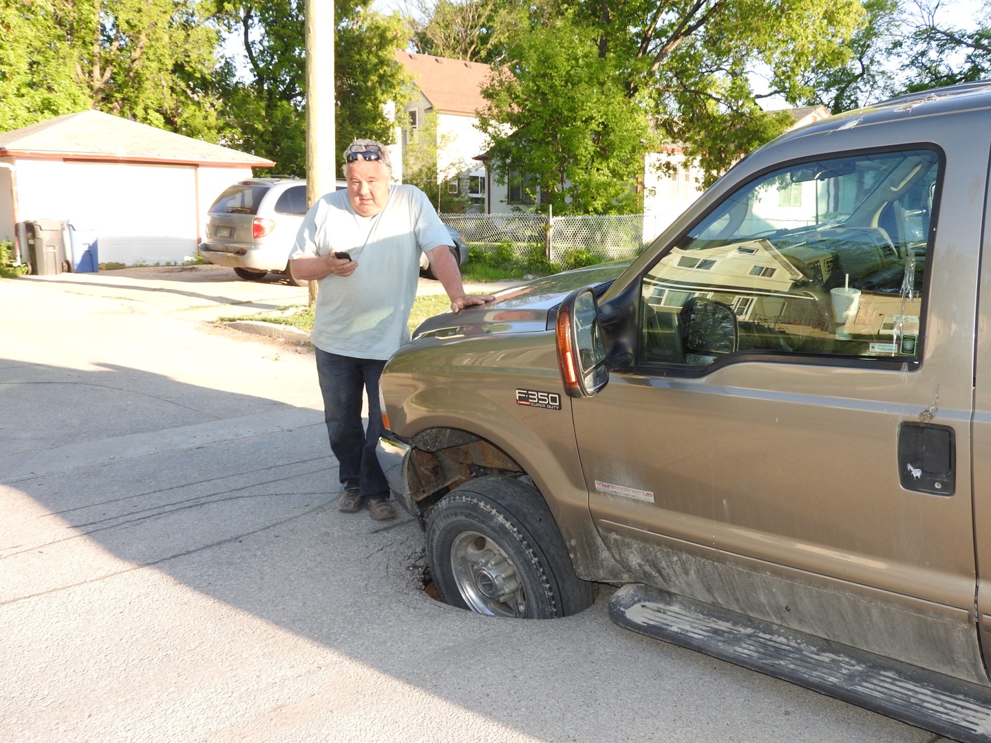 Farley Pollock turned onto Powers Street just before 8 p.m Wednesday when his truck’s tire suddenly broke through the roadway.
