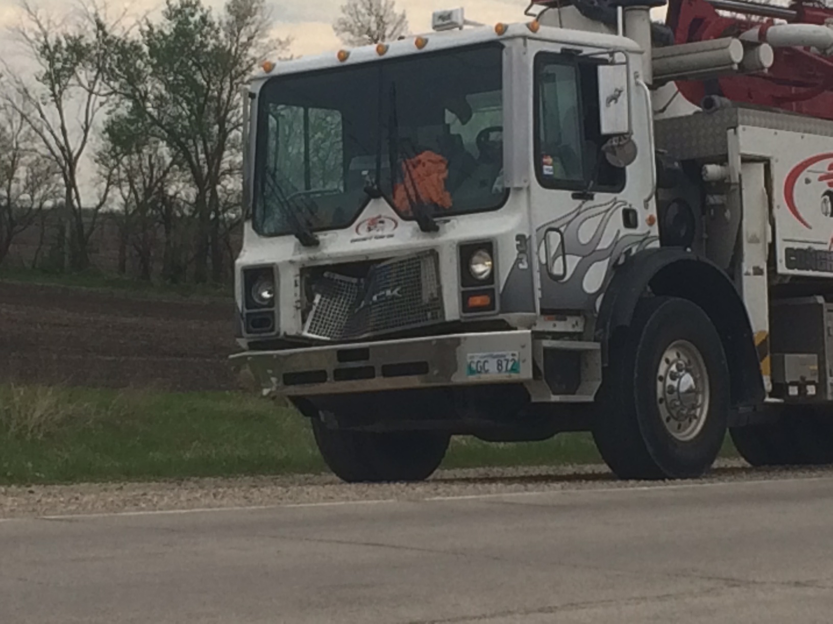 Koop was making a delivery for Piston Ring driving from Niverville to Ile de Chenes on Highway 59 when she stopped for a car in front of her that was waiting to turn left. Suddenly she was hit from behind by a concrete pumper truck.