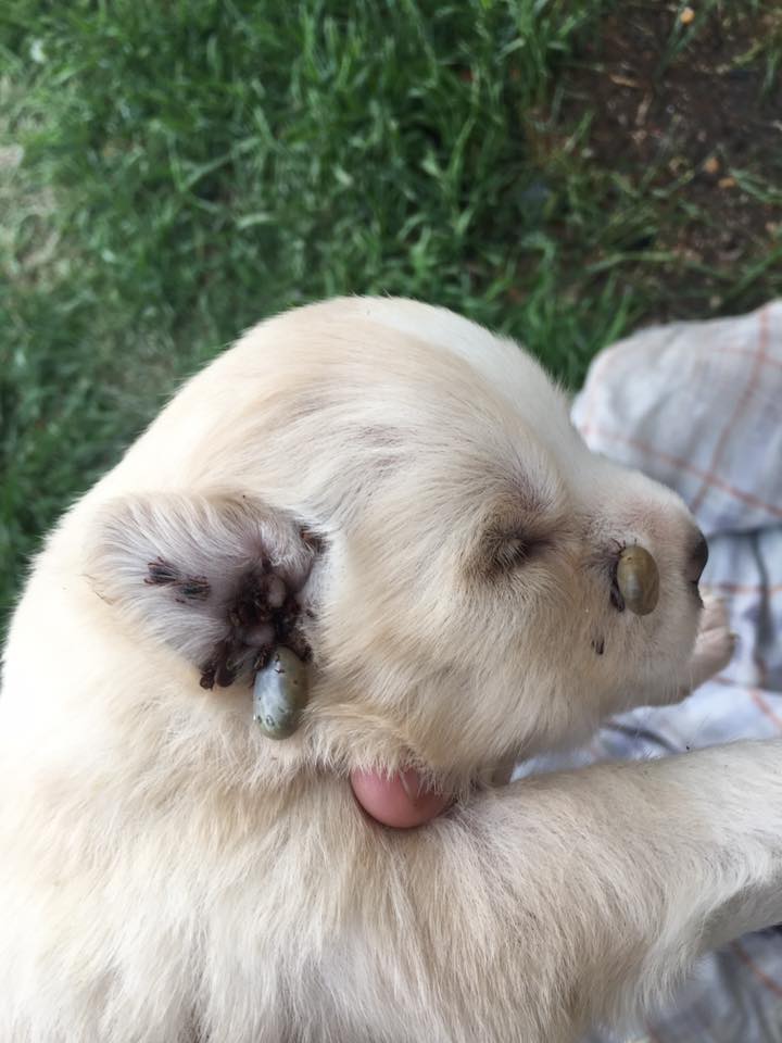 Two weeks ago, the animal rescue group saved several puppies with their mom. They were all severely infected with ticks.