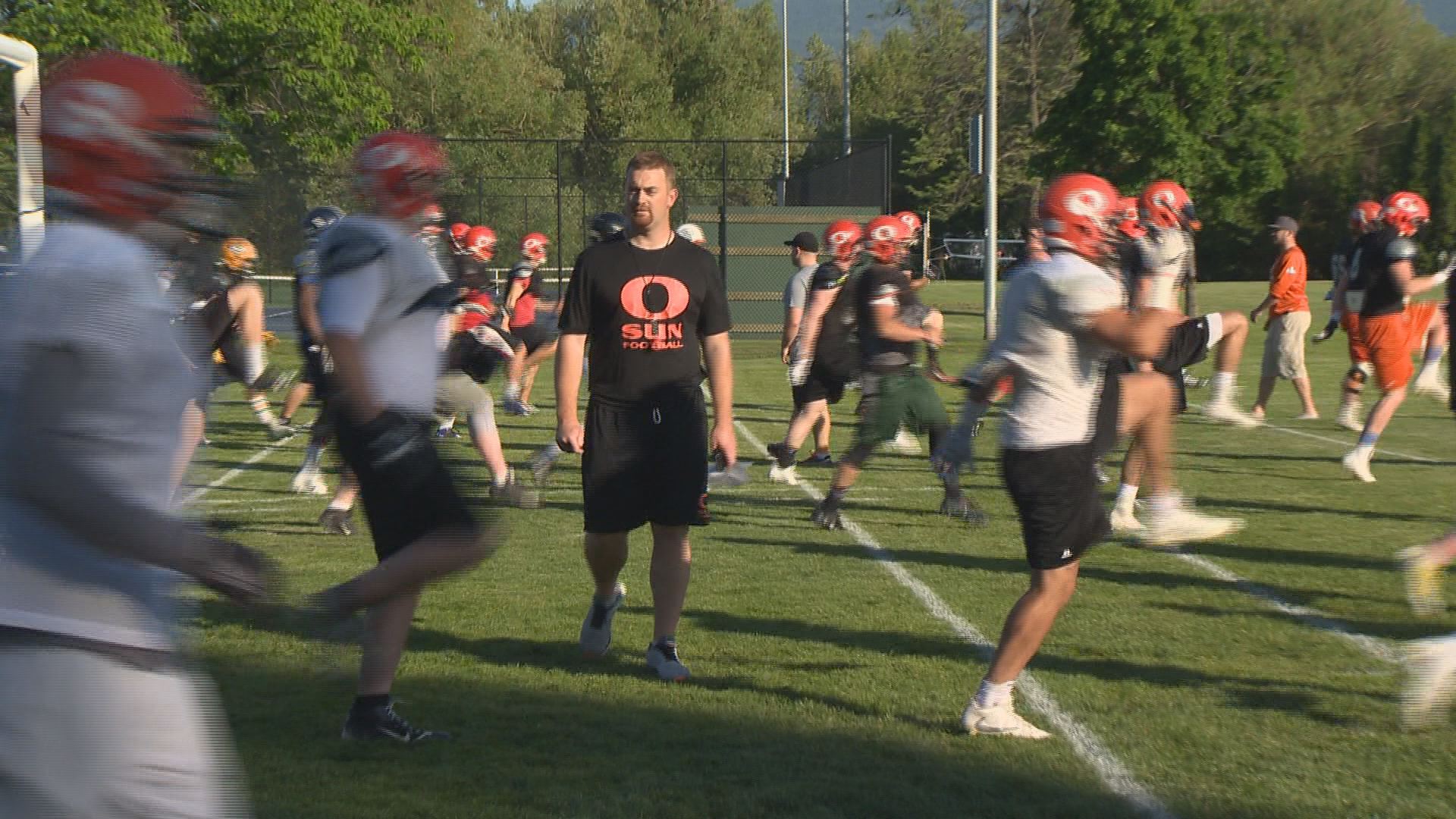 Spring training camp began Friday for the Okanagan Sun of the BC Football Conference.