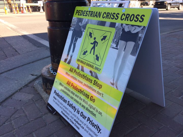 The City of St. Albert is testing out a new kind of intersection crossing – a scramble, also known as a criss cross intersection.