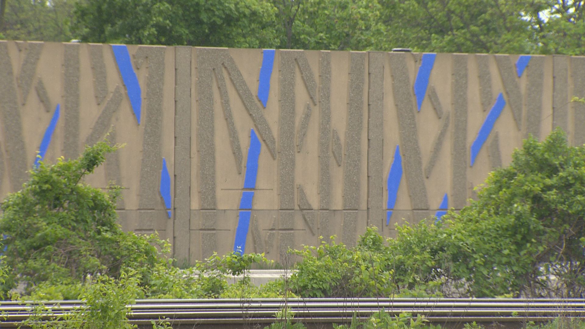 The sound barrier between 55th Avenue and 32nd Avenue has received a fresh coat of vibrant blue paint.