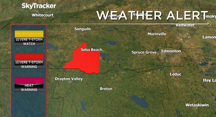 At 7:44 p.m., Environment Canada issued a severe thunderstorm warning for Yellowhead County near Edson and Sundance Provincial Park. The weather agency warned people in those areas of the possibility of heavy downpours that could cause flash floods and see water pooling on roads. The warning was later dropped at 8:25 p.m.