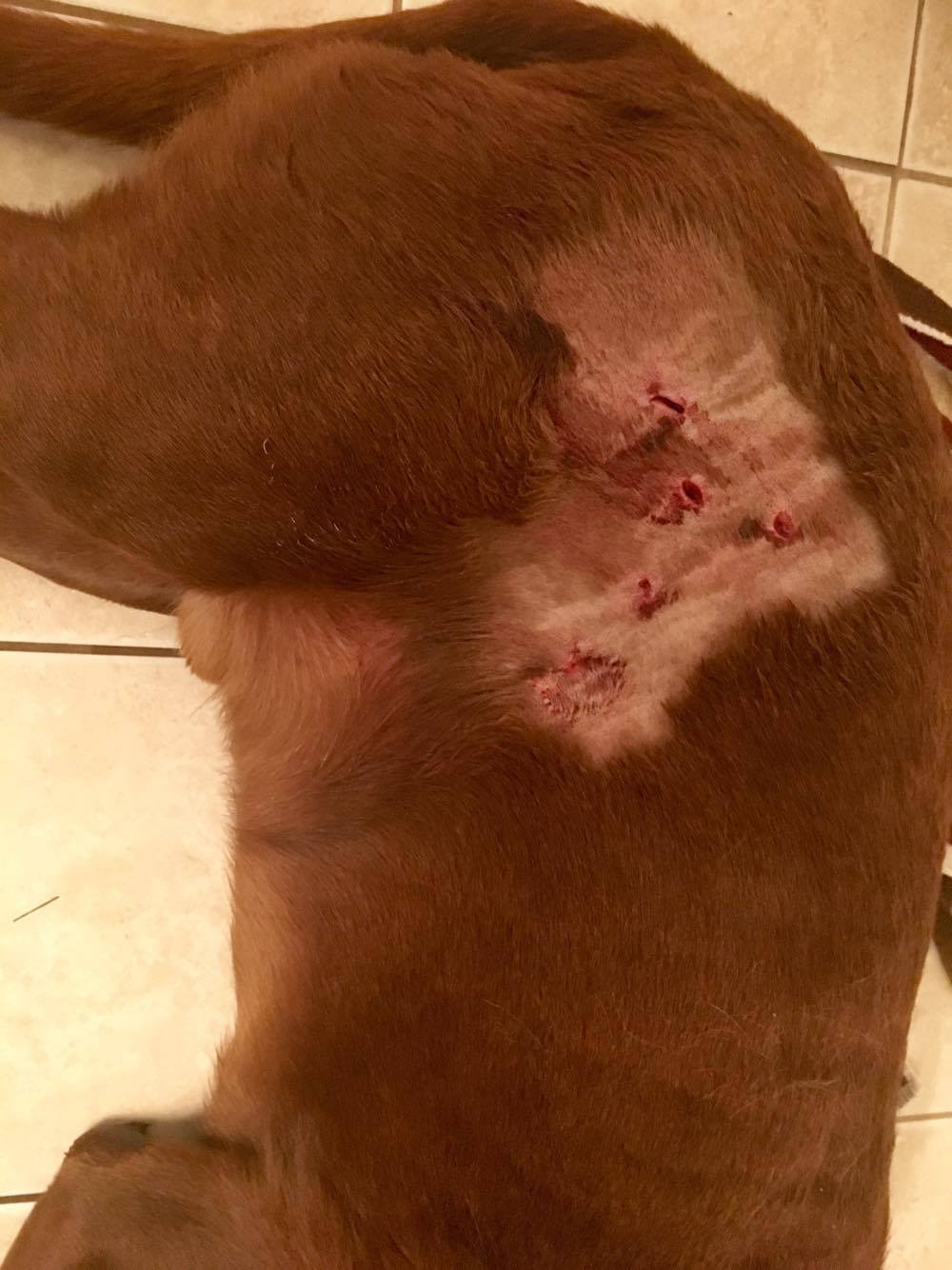 “He had actually a chunk out of his lower abdomen, closer to his belly, which required a little bit more invasive surgery. He was heavily sedated, required internal stitching.”
