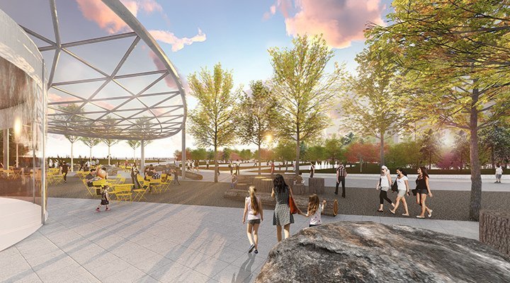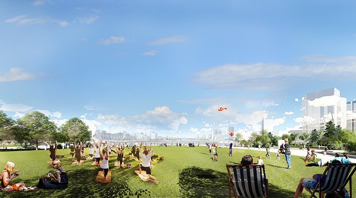 It says the park will feature a series of platforms that capitalize on vistas across the water, and spaces oriented to take full advantage of the views to the open water, the mountains, surrounding landmarks and skyline.