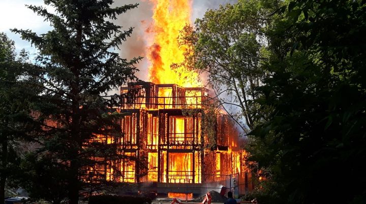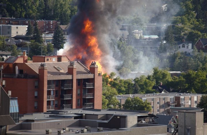They received numerous calls about the fire that could be seen from blocks away; some callers reported flames up to 30 metres high. Officials said at least one suggested the blaze was “threatening apartment buildings next door.”