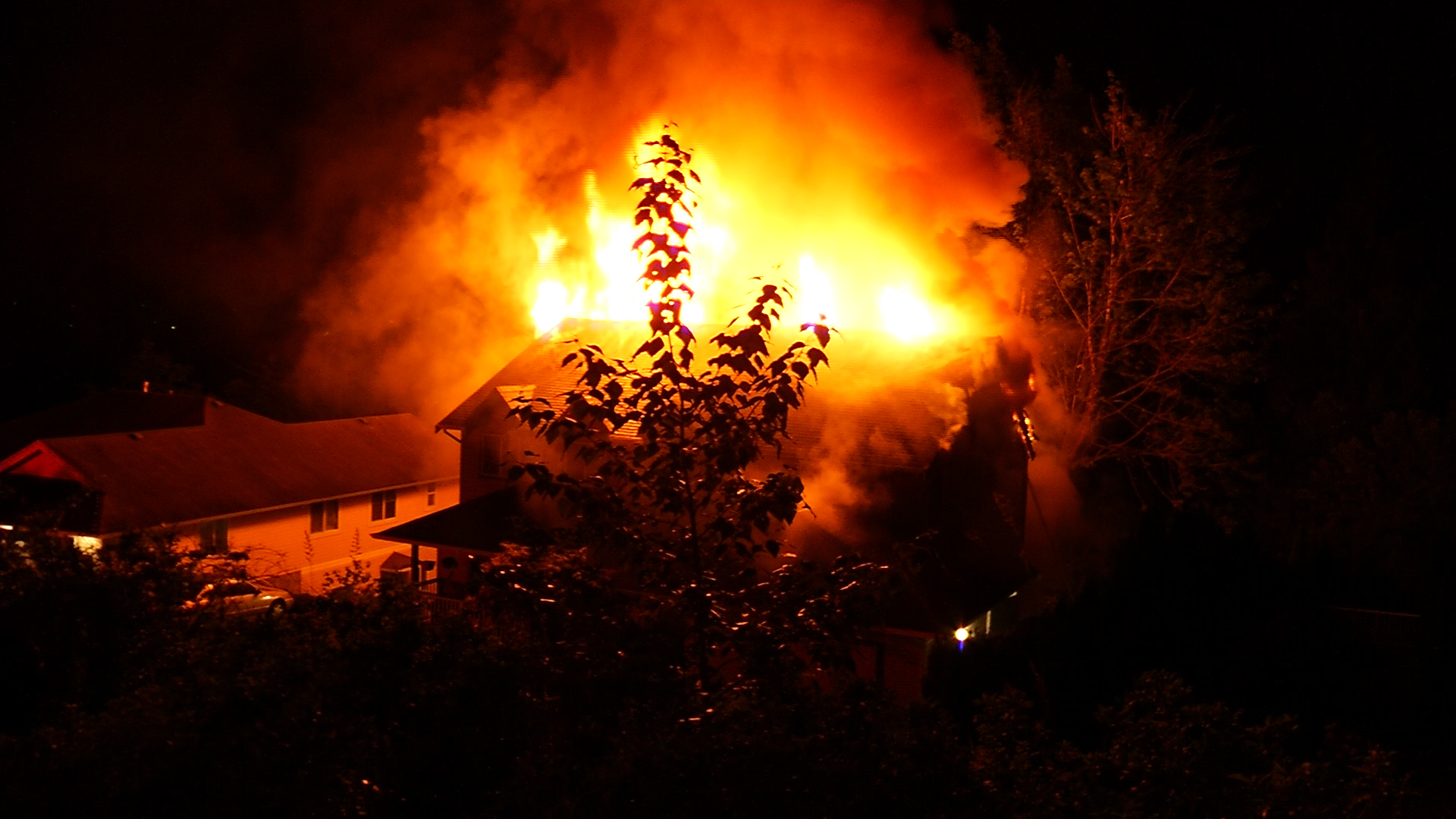 Flames could be seen shooting from the roof just after 1 a.m. and quickly spread throughout the rest of the house, engulfing all three floors.