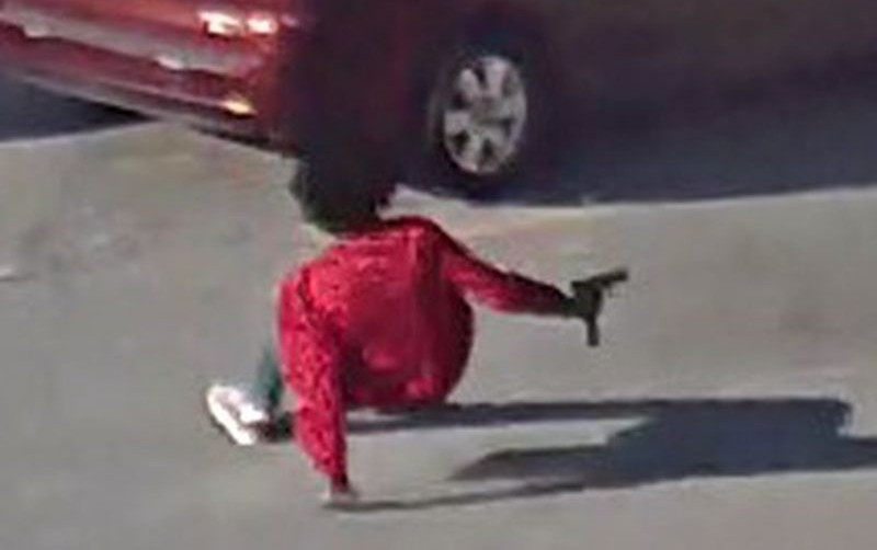 Seconds later another male, who is seen as the driver of the SUV, walks over to the victim who hands him the firearm.
