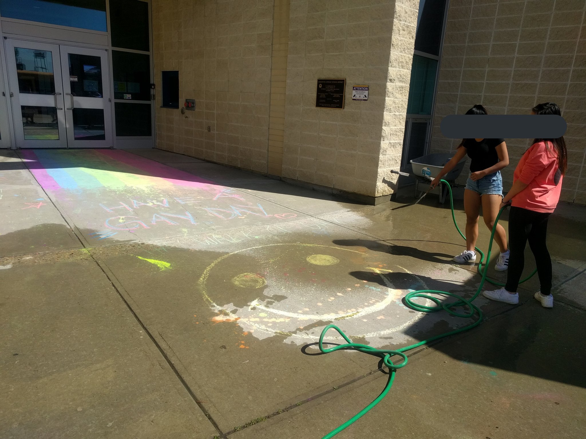“This issue was that the custodians had an issue with chalk being used to make a rainbow flag at the front of the school,” trustee Debbie Engel said Wednesday afternoon.