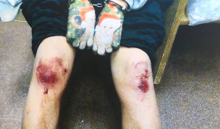 The photos above show the marks left on the man after the Crown said he was choked, punched and slammed into a police cruiser by Cpl. Dean Flaman.