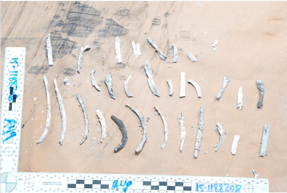 RCMP Const. Carla Perrin collected evidence at the Meketech residence and testified that the front door appeared to have been forced open because of “obvious splits in the door frame” and a latch lying on the floor.