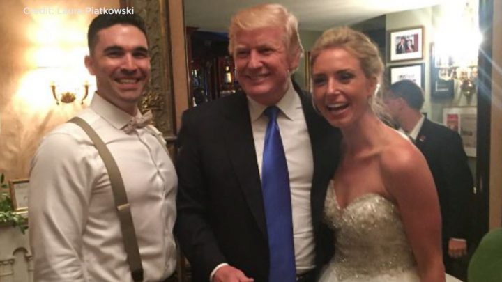 The couple, Kristen Piatkowski and Tucker Gladhill, seemed more than happy to share their spotlight with the president, who walked in following an all-clear from Secret Service. The reception was being held at Trump National Golf Club, according to CNN.