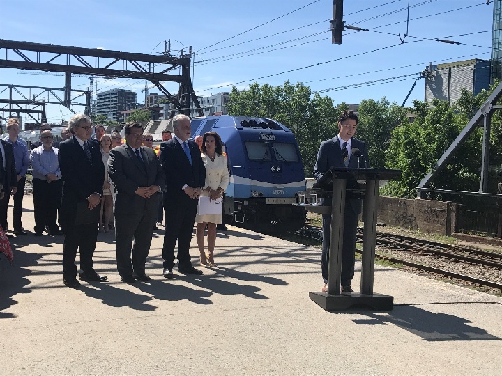 Prime Minister Justin Trudeau was in Montreal Thursday morning to announce a $1.28-billion commitment for a rail project that will connect the city to its suburbs and to its international airport.