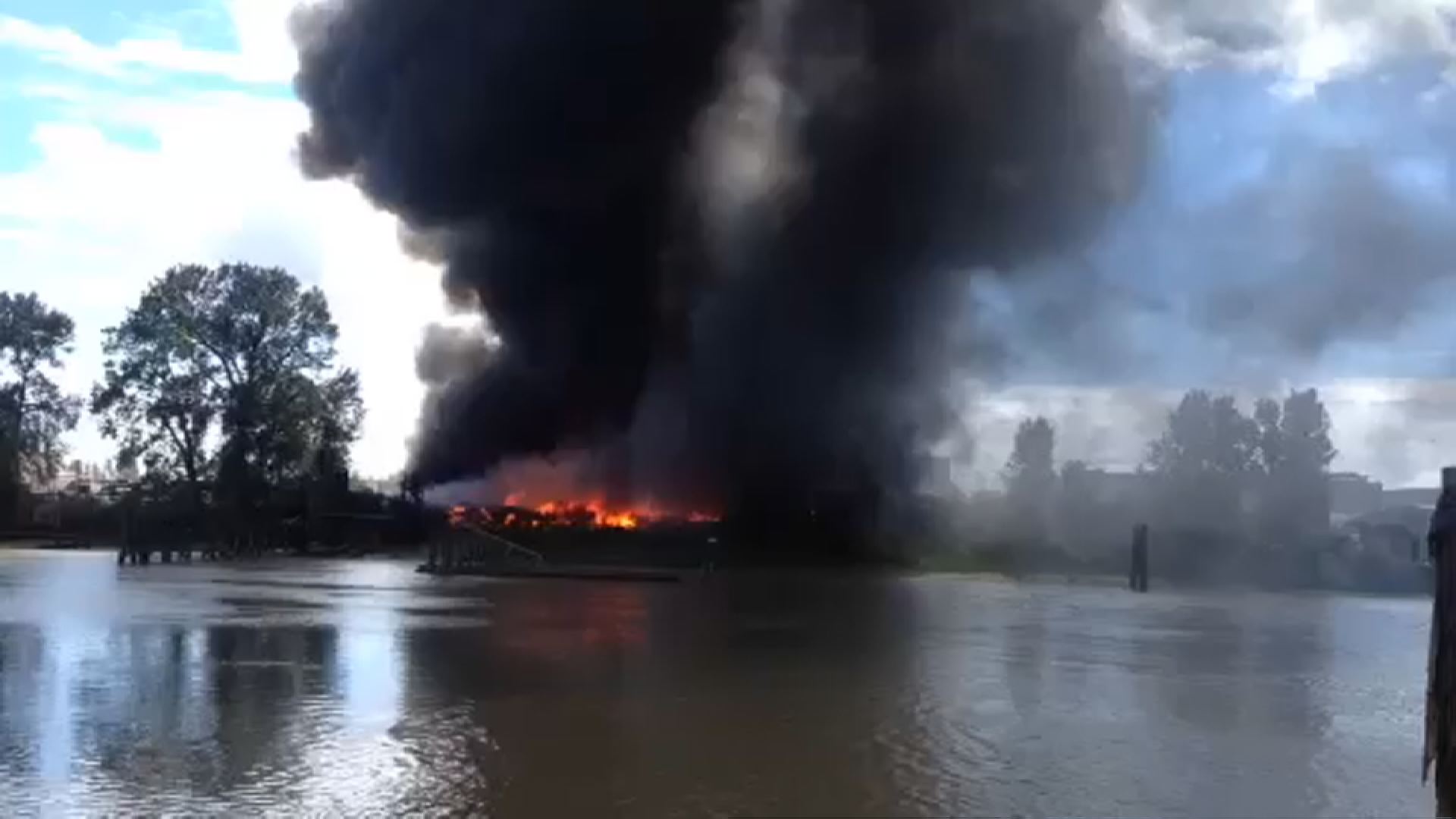 Thick black smoke could be seen from across Metro Vancouver. RCMP are urging people to avoid the Knight Street Bridge. Mounties are warning drivers in the area to expect delays.