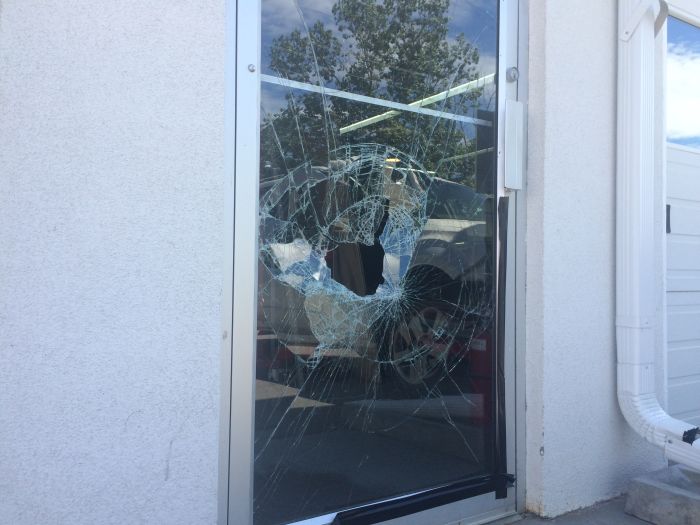 Staff at Lou’s Auto Body had to board up smashed glass on a door at the Inglewood shop after an intruder tried to get inside in broad daylight while the boss was away.