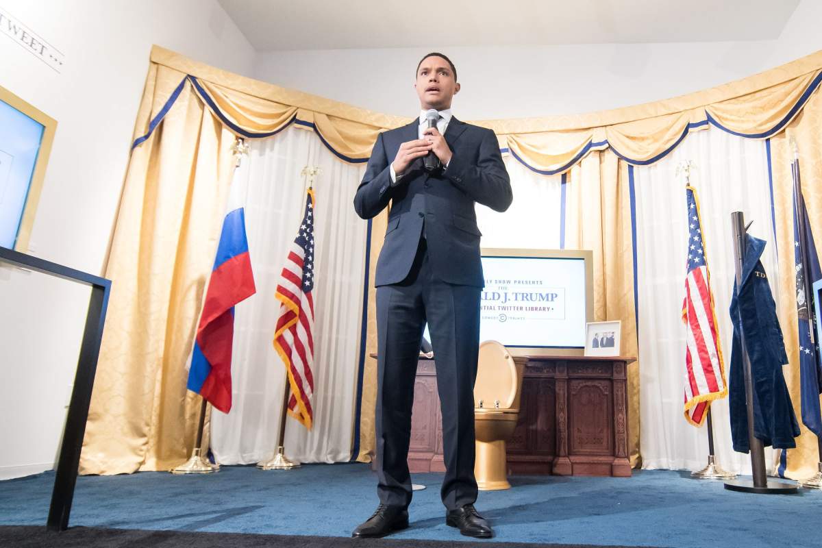 “What we’ve done here today is really put together the finest tweets, the best of the best, the moments that encapsulate what the president means on this beautiful platform,” said Noah, who like other late night television hosts has roundly mocked Trump throughout his five months in office.