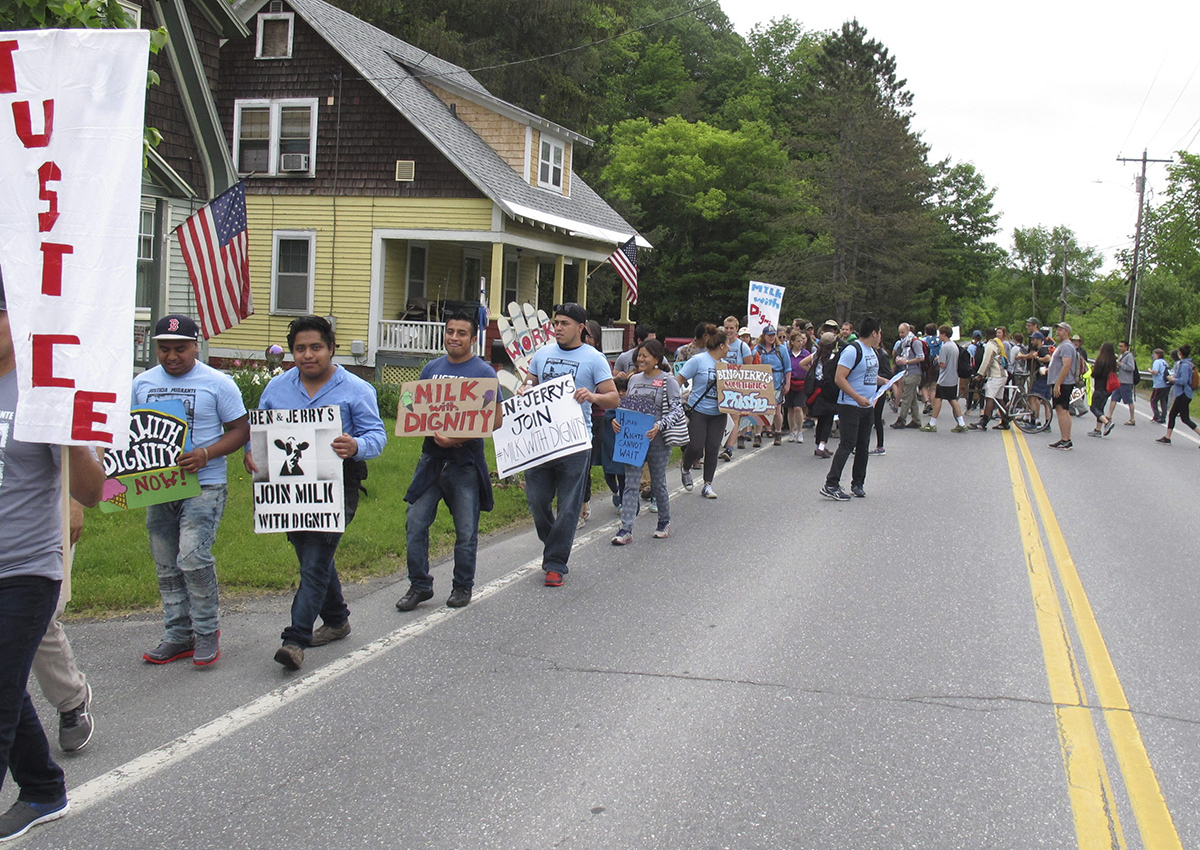 MONTPELIER, Vt. – Scores of dairy farm workers and activists are marching to the Ben & Jerry’s factory in the Vermont town of Waterbury to protest what they say are slow negotiations to reach a deal on the so-called “Milk with Dignity” program.