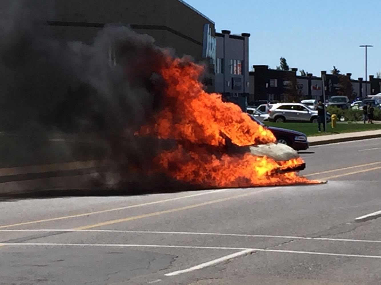 There was quite a commotion on Quance St. Wednesday after a car caught fire near the GoodLife Fitness.