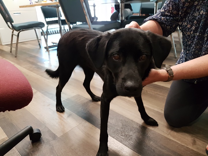 It was not seriously injured but was checked by a veterinarian, who determined the dog was a female black Lab or Lab cross, one year old or younger. She has no microchip or tattoo and has not been spayed.