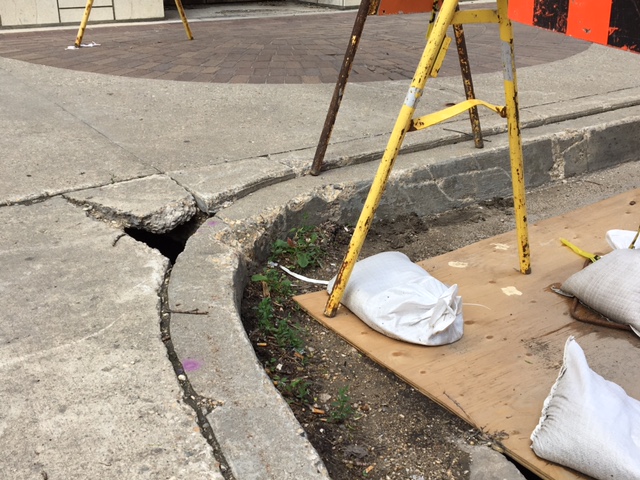 University of Manitoba Civil Engineer, Ahmed Shalaby, said the buildings should be fine. He said it appears the storm water sewer is damaged or collapsed, causing the earth around it to be washed away. Eventually as more people drive and walk over the area the concrete crumbles.