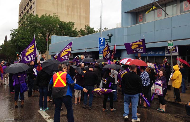 Hundreds of protesters marched outside the Saskatoon cabinet office on Thursday afternoon to show their dissatisfaction with Brad Wall’s government.