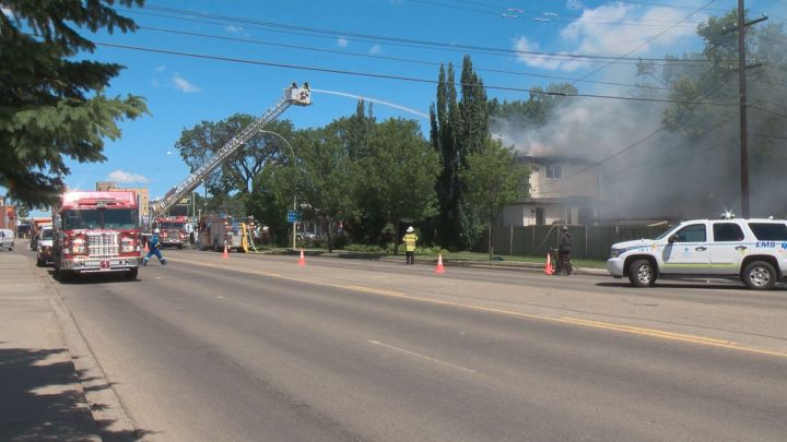 Fire crews were called to the blaze at a fourplex in the area of 98 Street and 81 Avenue at around 12:50 p.m.