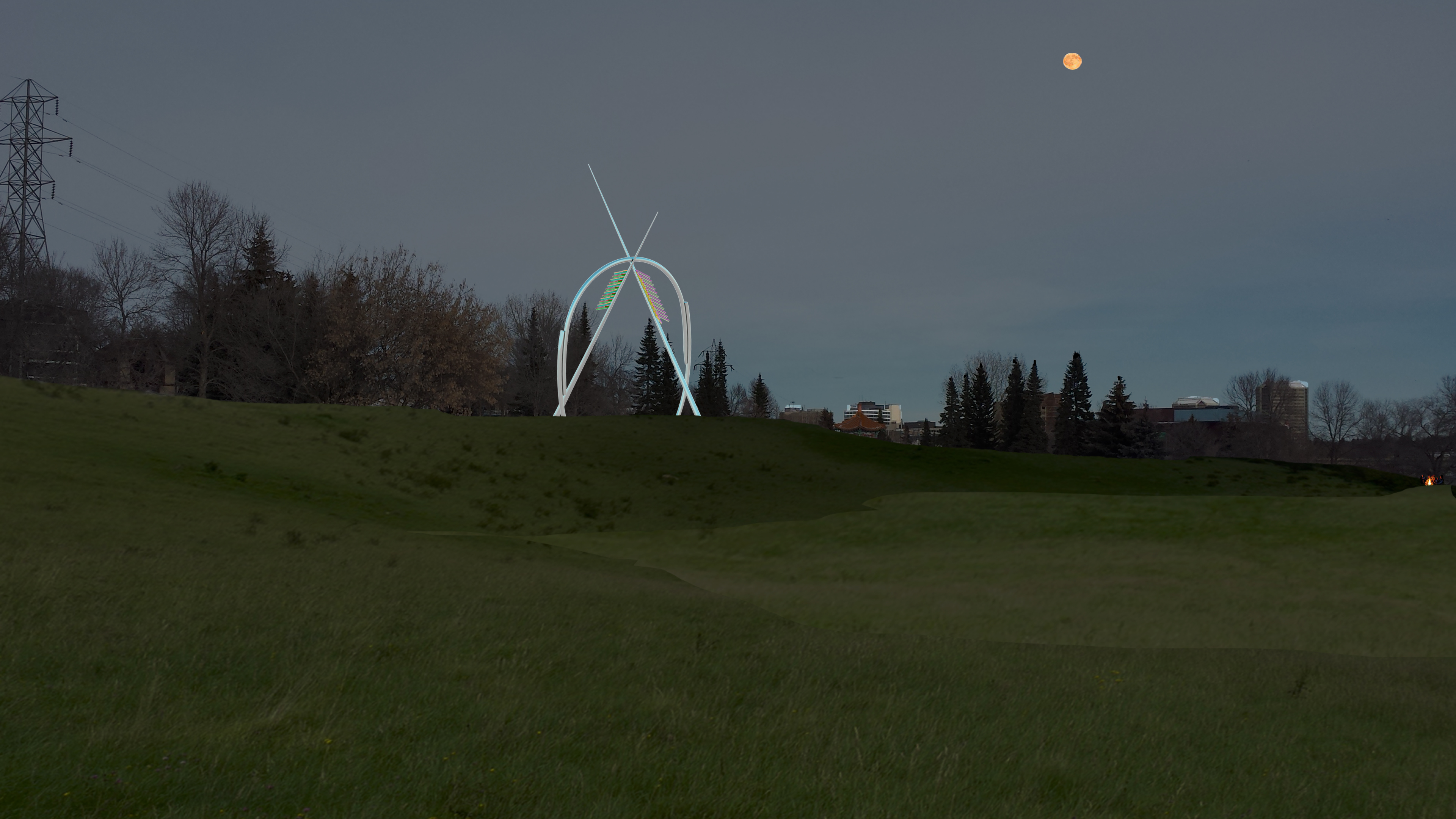 The ‘Where Our Paths Cross’ commemorative artwork will feature a 20-foot high beaver pelt stretcher with two poles intersecting above it. One 35-foot pole will represent First Nations peoples, while a second 28-foot pole will represent the Métis community.