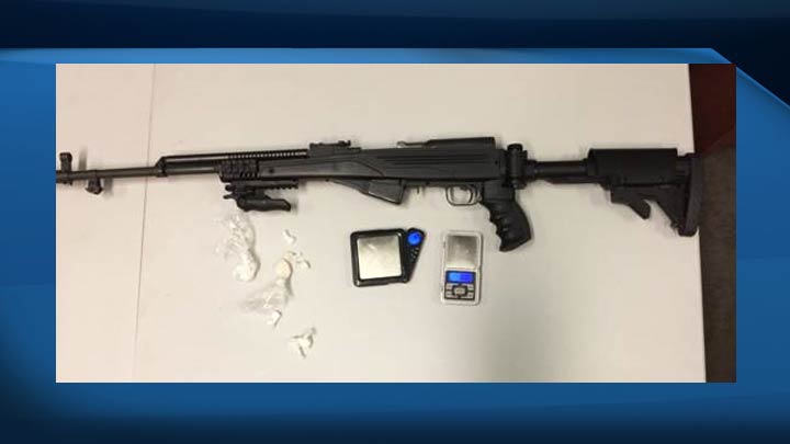 ISET officers found an SKS rifle, 11 individually wrapped packages of cocaine and 62 codeine pills.