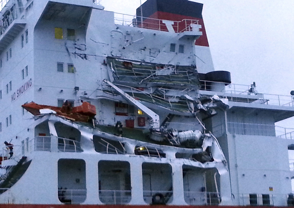 Three French experts were dropped onto the Seafrontier by helicopter a few hours after the collision and assessed that the hull had not suffered substantial damage.
