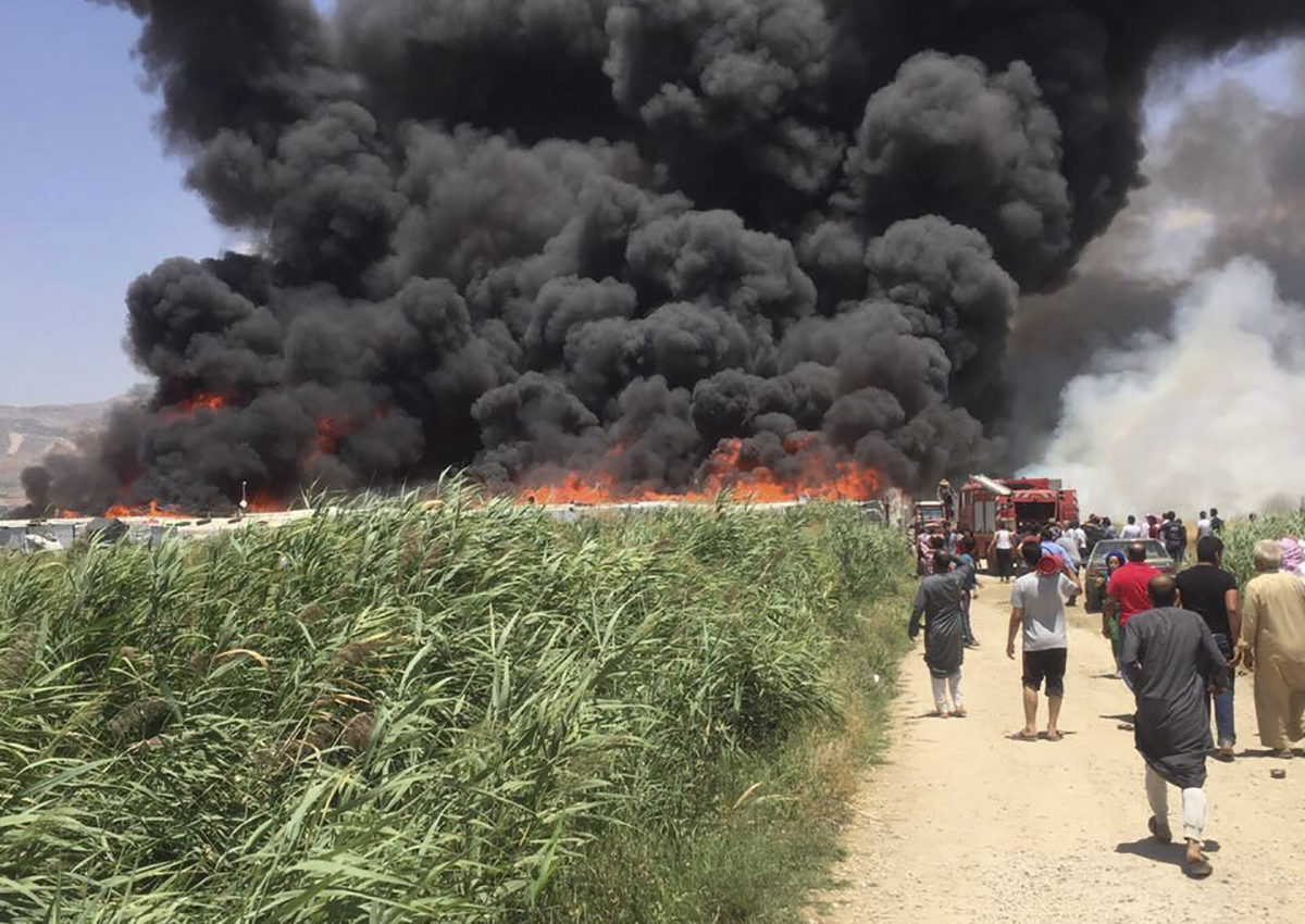 Ahmed Salloum, a member of the local emergency services, said the fire turned the tent camp near Qab Elias town into “ashes.” He said firefighters and emergency workers struggled for over two hours to contain the fire that broke out around midday. Temperatures are soaring in Lebanon’s Bekaa region, and Salloum, an electricity technician, said he suspected an overload of power was to blame.