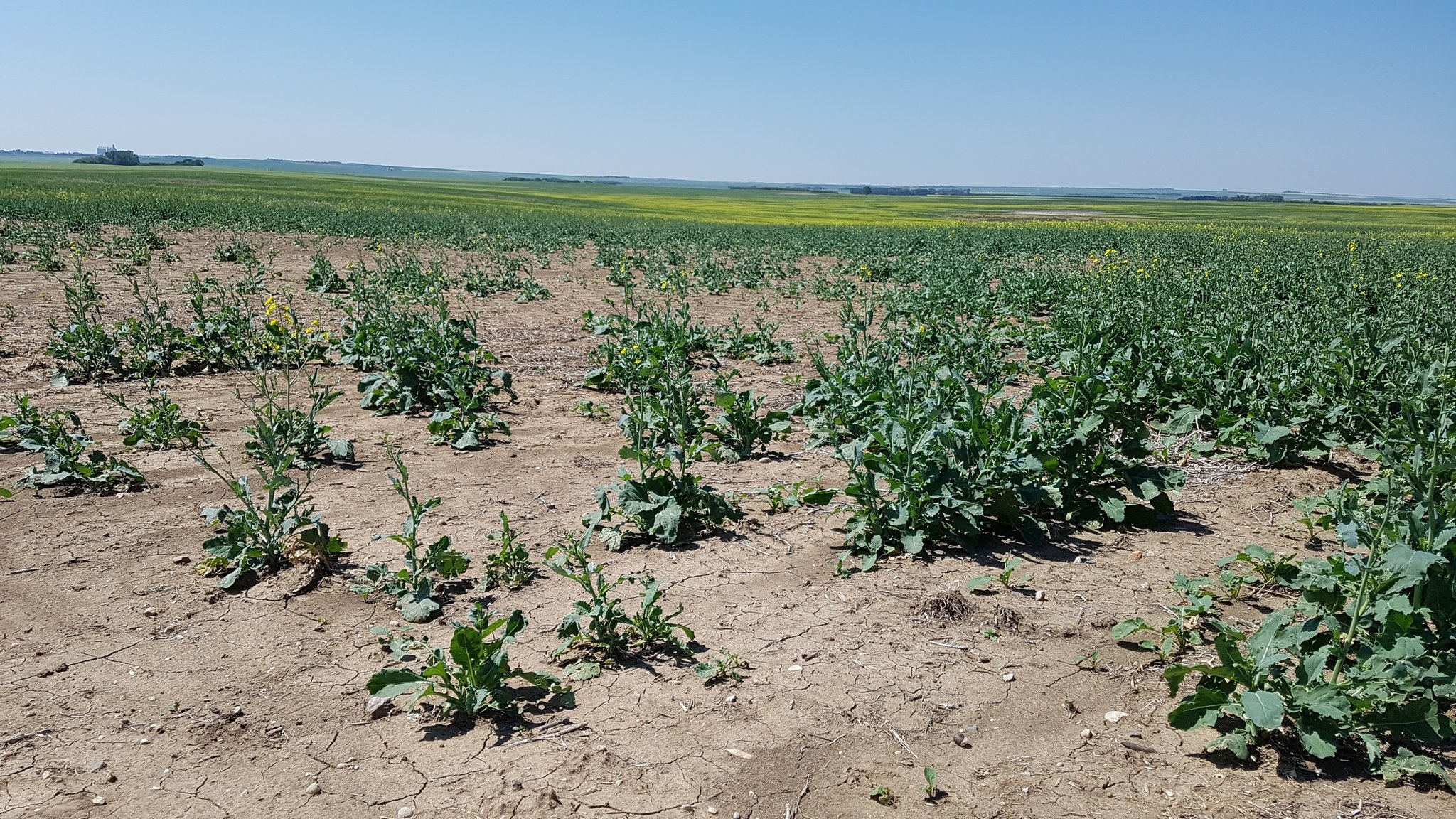 At this point, canola is in the worst shape. Any flowers that are blooming may not be able to produce seeds, because the combination of heat and wind can fry the flowers.