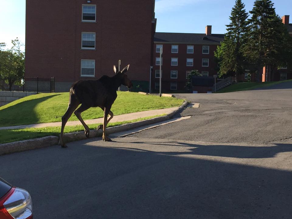 “Spotted: An adolescent moose scouring UNB Fredericton’s campus for our wildlife friendly gardens- looks like they’re working!” tweeted UNB Sustainability.