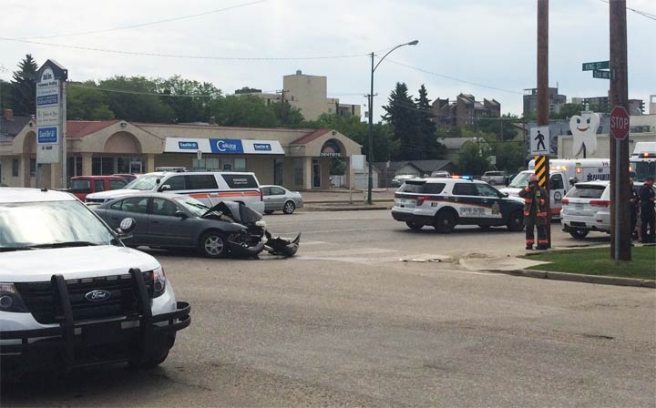 Emergency services in Saskatoon dealt with a motor vehicle collision in the 600-block of 2nd Avenue North on Saturday.