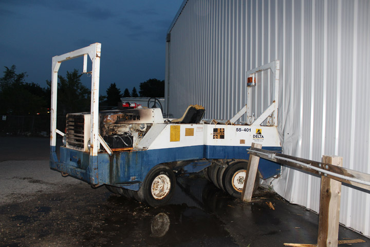 Crews also had to deal with possible electrical hazards due to the packer being driven through vehicle plug-ins along the exterior of the building.