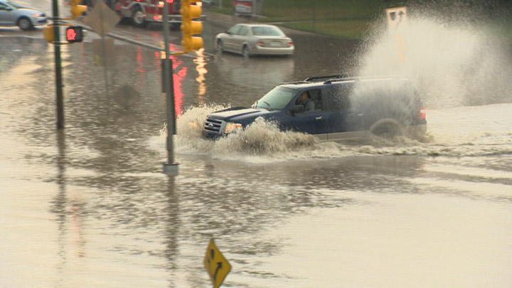 Vehicles were stranded by flash flooding at Confederation Drive and Laurier Drive. It took hours for water to ease and traffic to return to normal.