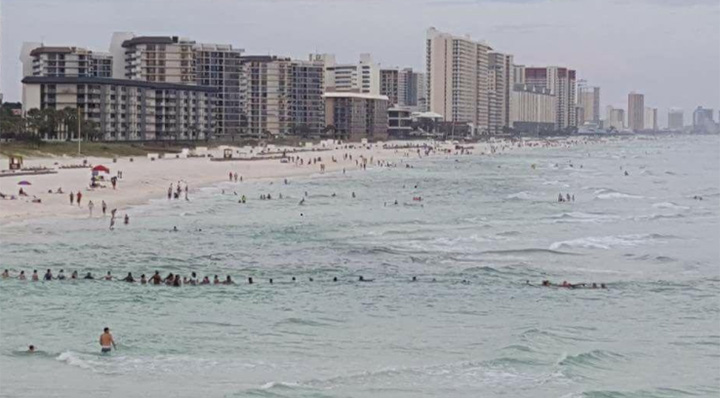 PANAMA CITY BEACH, Fla. – Strangers on a Florida beach formed an 80-person human chain to rescue nine members of family who had been caught in a riptide and pulled too far from shore.