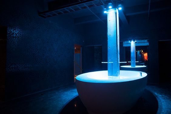 The washrooms at this live music venue in Montreal resemble a Turkish bath with a communal water fountain for hand washing.