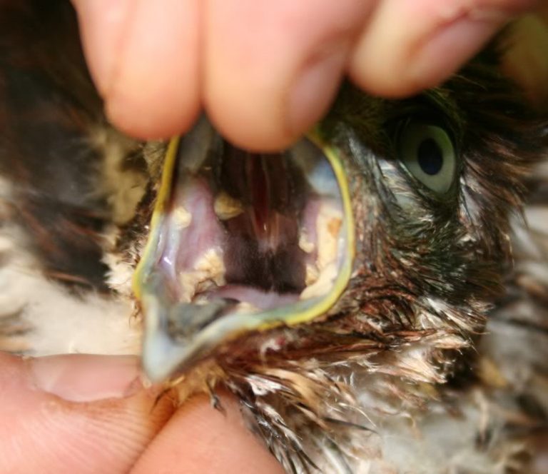 The infection is a result of a parasite that infects the upper digestive tract of birds, as well as other organs including the lungs. It does not pose a risk to humans or other animals.