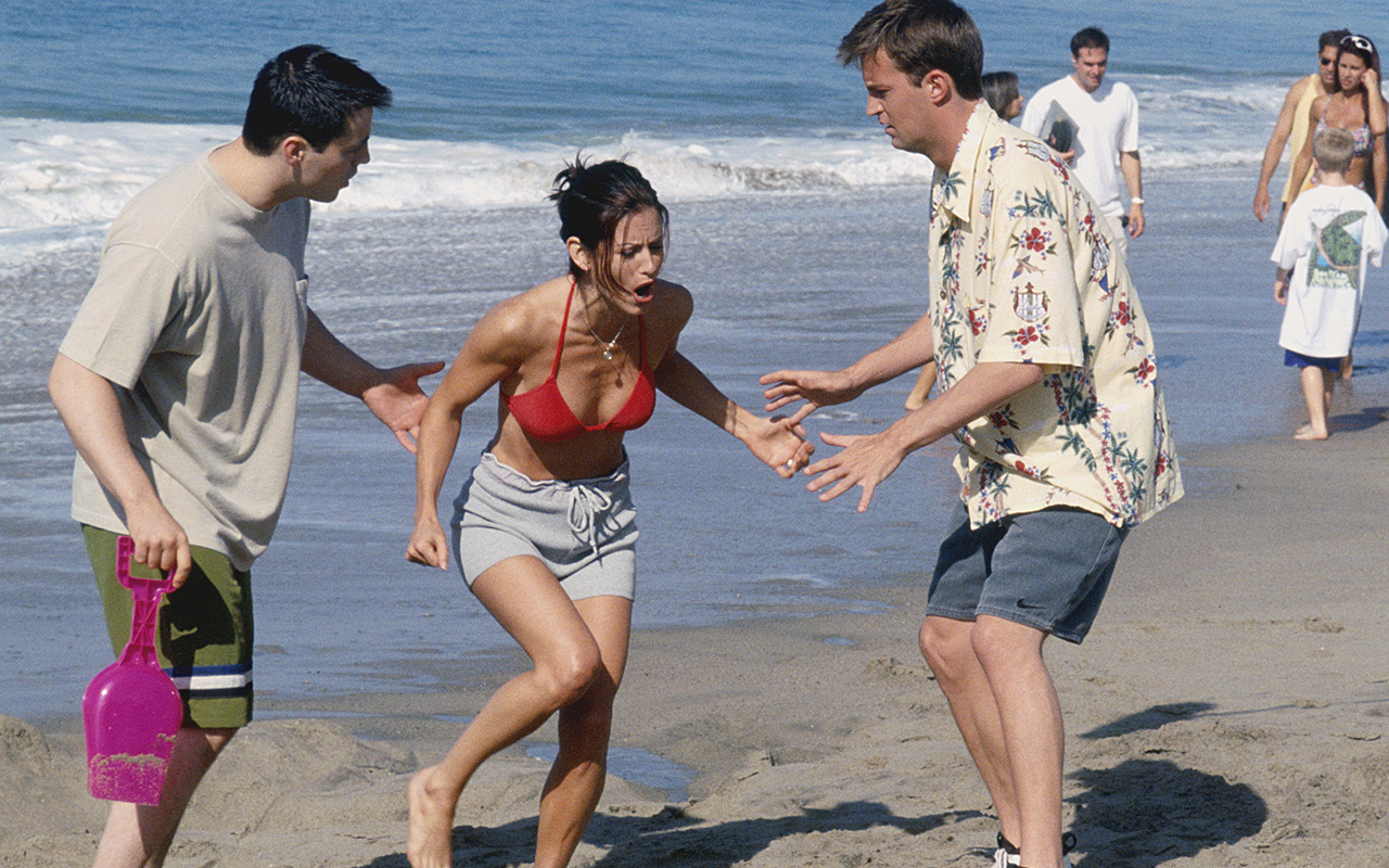 Joey Tribbiani (Matt LeBlanc), Monica Geller (Courteney Cox) and Chandler Bing (Matthew Perry) are at the beach when Monica is stung by a jellyfish. Chandler has to pee on Monica’s leg to relieve her of the pain. Ross Geller (David Schwimmer) ends up breaking up with his girlfriend Bonnie and shares a room with former girlfriend Rachel Green (Jennifer Aniston). Ross takes full responsibility for everything that went wrong between him and Rachel but they get into another fight because he doesn’t believe he was the one who did anything wrong. Phoebe Buffay (Lisa Kudrow) learns that her real mother regrets giving her up as a baby. When the friends return to the city, Chandler, Monica and Joey confess what really happened at the beach. — KT
