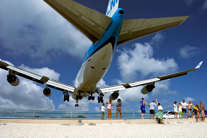 Tourists are known to gather at the airport to watch air planes land and take off from the Caribbean island.