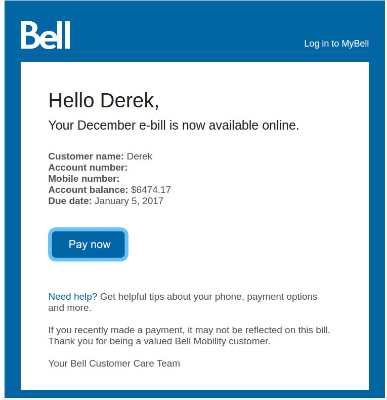 Then Bell sent him a bill for $6,474.17, well above what he expected to pay.