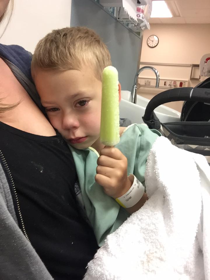 Doctors in Whitecourt gave Oliver a steroid to reduce the swelling in his throat and help him swallow. He was taken by ambulance to the Stollery Children’s Hospital for an operation to have it removed.