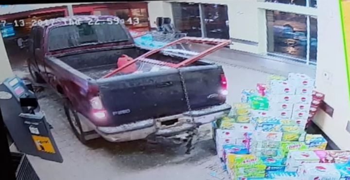 Police said the driver of a red or burgundy Ford F-250 pickup truck backed through the glass doors of the Cold Lake Sobeys at around 11:15 p.m. Thursday.