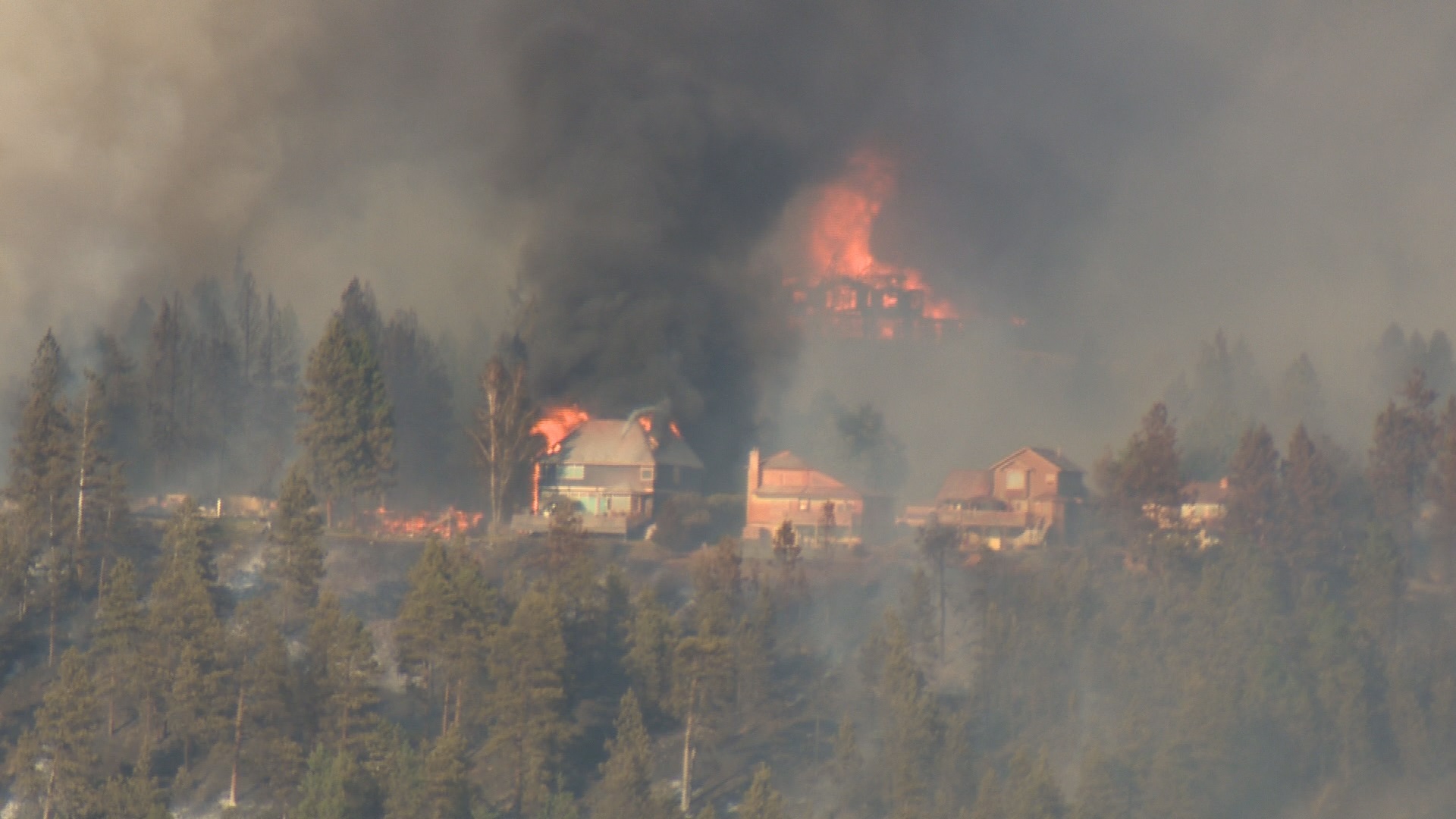 Global News had cameras fixed on the Tyndall and Nighthawk Rd. area where homes could be seen in flames as waterbombers took several passes.