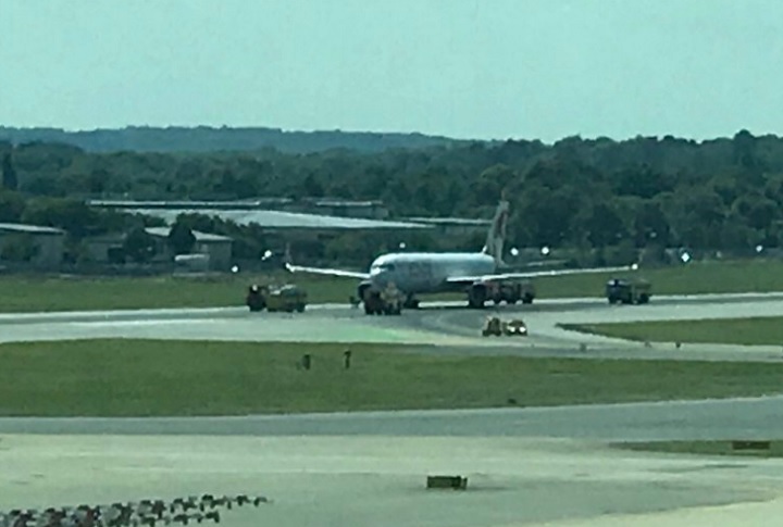 “As per standard operation procedures and as a precautionary measure, the crew requested emergency services presence after a tire blew upon take off,” Arthur said in the statement. “The aircraft is out of service for a maintenance inspection.”