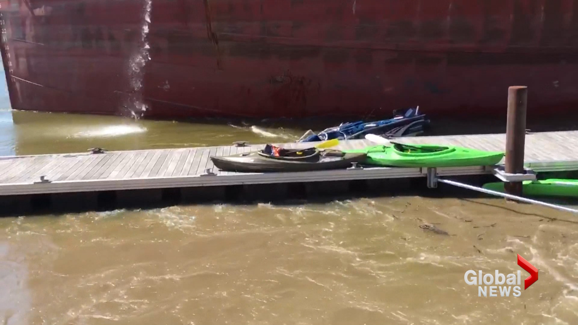 “The back end tried to turn but as it turned it hit the docks and it flipped over a couple of kayaks and it crushed this one little boat almost like an aluminum can,” Greta Olsen described to WFRV. “It was crazy.”